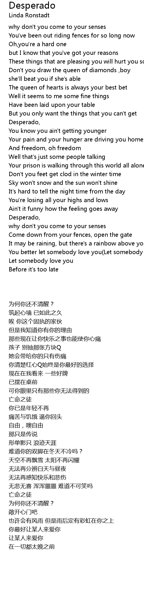 | Song | Desperado |