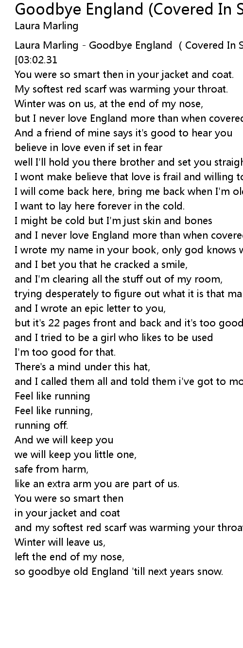 | [00:02.00] | Laura Marling Goodbye England Covered In Snow |