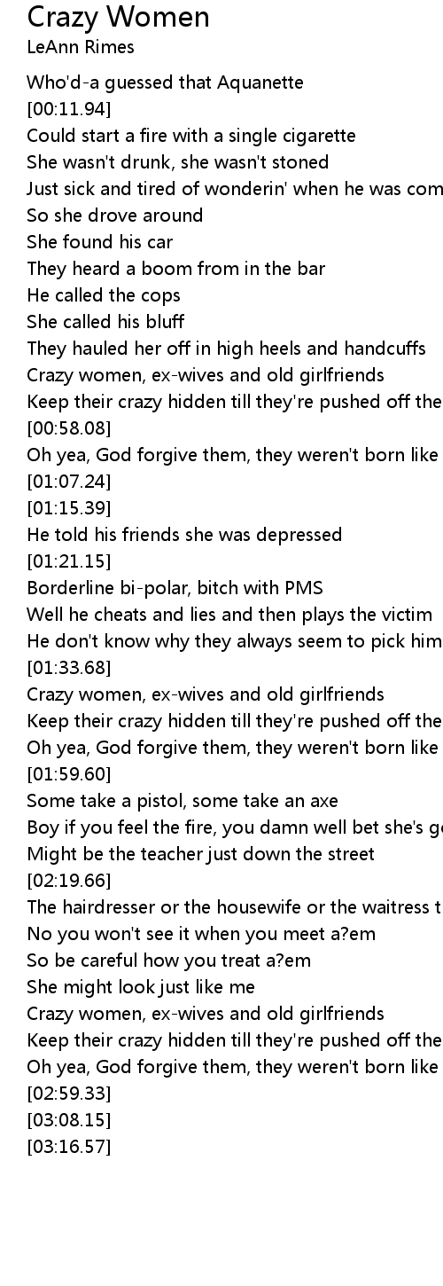 [01:34.66] Crazy women, ex-wives and old girlfriends