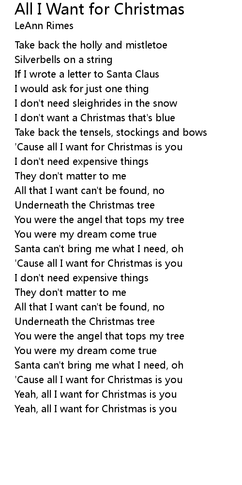 Yeah, all I want for Christmas is you |