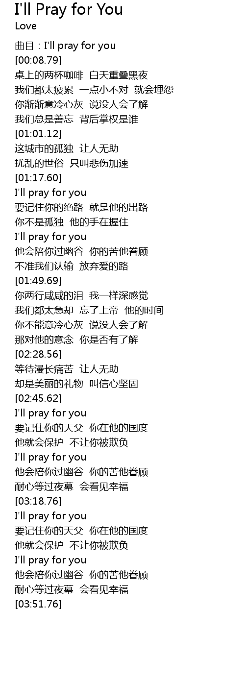 | [00:02.00] | qǔ mù: I' ll pray for you |