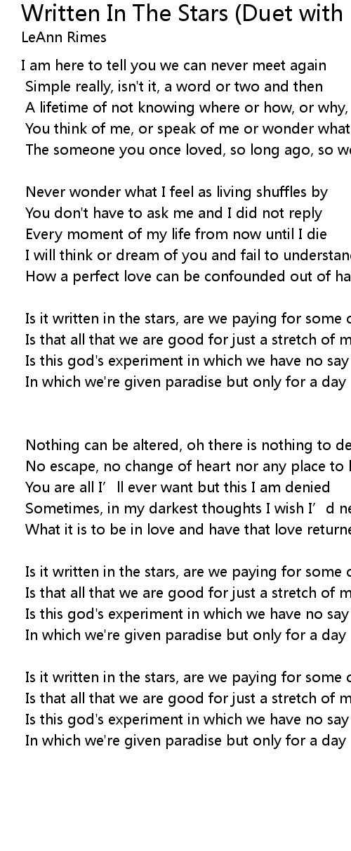 | Is it written in the stars, are we paying for some crime | |