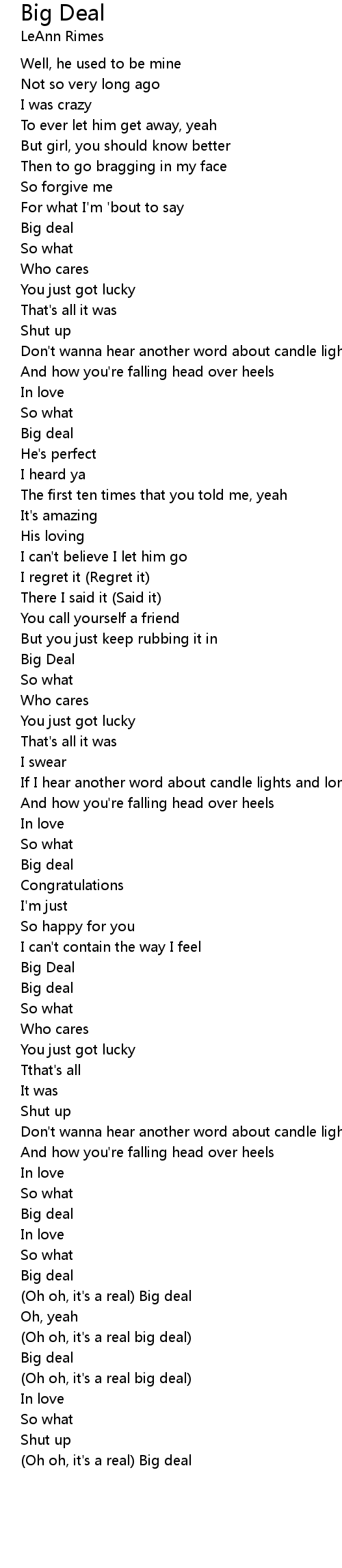(Oh oh, it's a real big deal) |