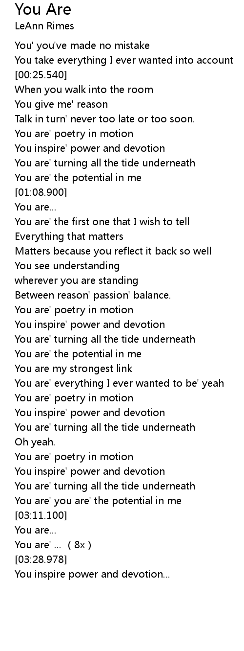 | [01:56.739] | You are' poetry in motion |