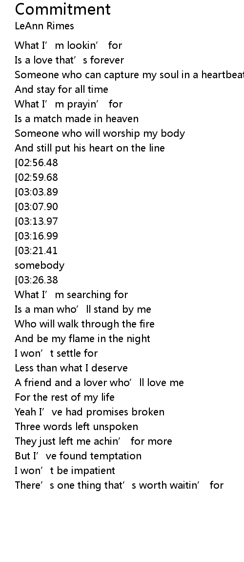 | [04:02.00][03:13.97][02:21.34][01:10.80] | Commitment |