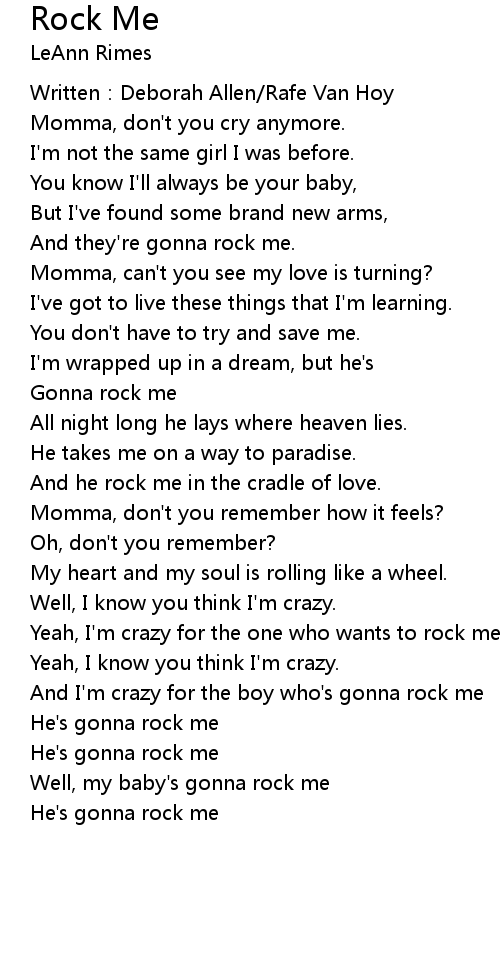 | Well, my baby' s gonna rock me | |