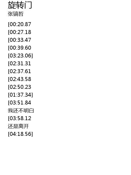 | [03:38.89][02:43.58][00:57.80] | 哦我的心也象是旋转门 |