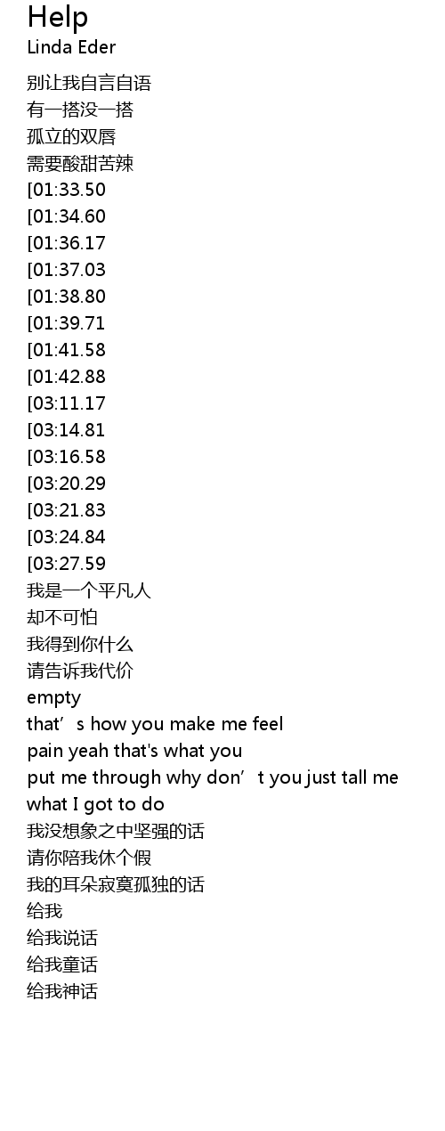 | [03:49.82][03:27.59][02:01.17][01:11.66] | baby help baby help help help help |