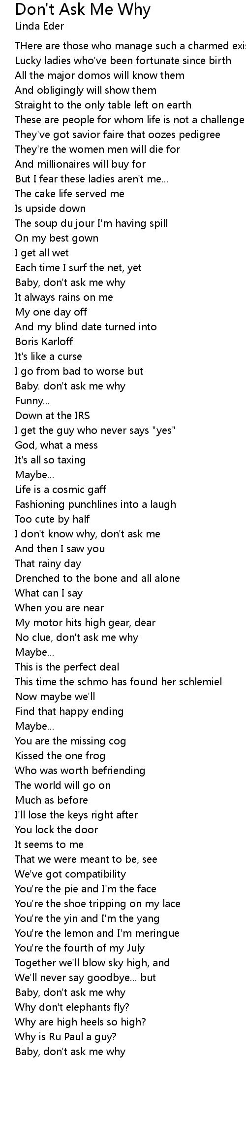 Don't Ask Me Why Lyrics