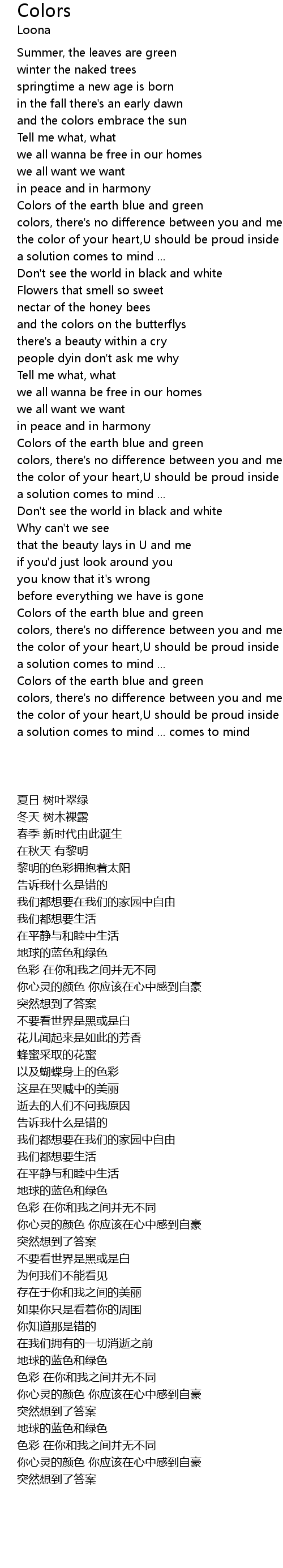 | [02:37.38] | Colors of the earth blue and green |