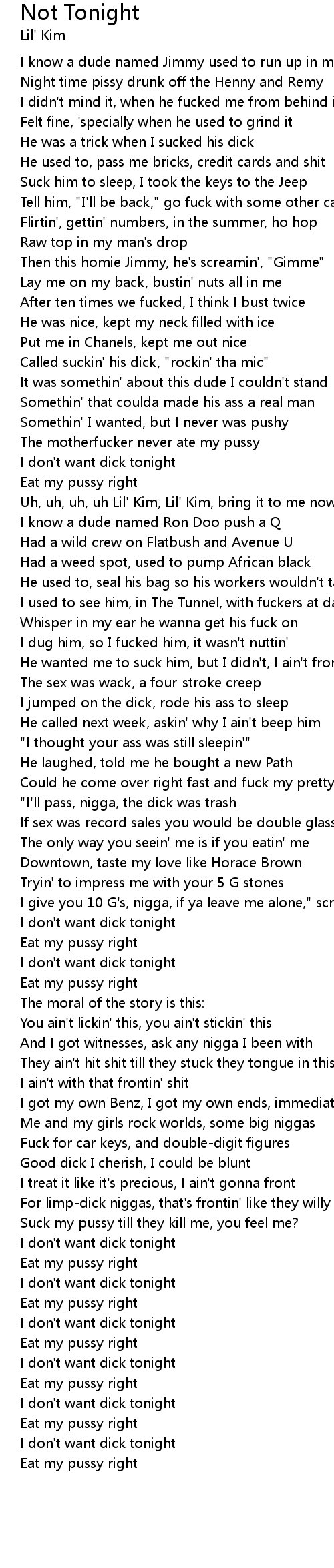 | [01:12.837] | The motherfucker never ate my pussy |