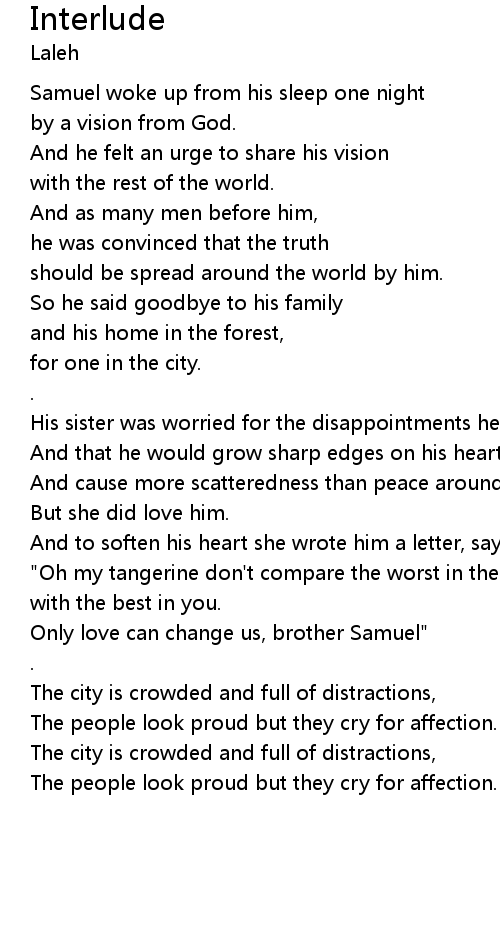 | [01:19.01] | Only love can change us, brother Samuel" |
