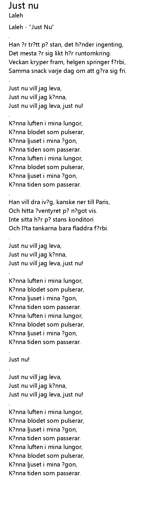 | [00:44.11] | Just nu vill jag leva, just nu! |