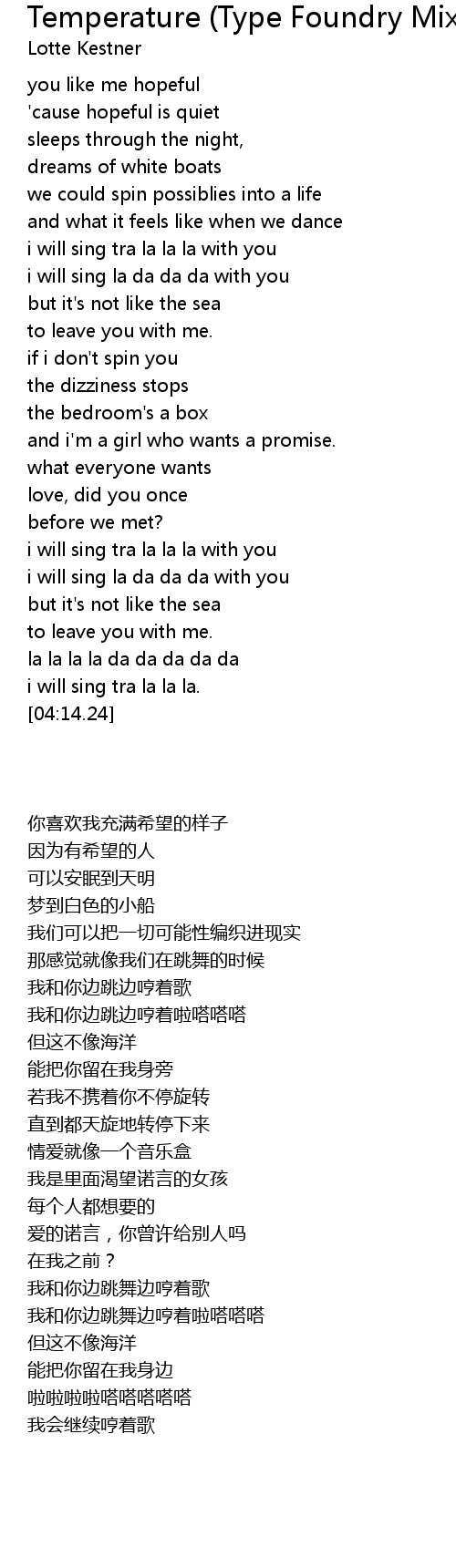 i will sing tra la la la with you |