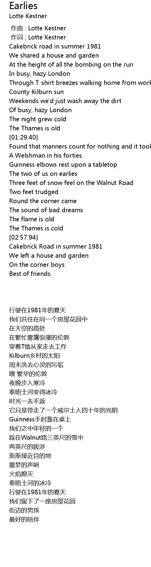 | [00:00.00] | zuò qǔ : Lotte Kestner |