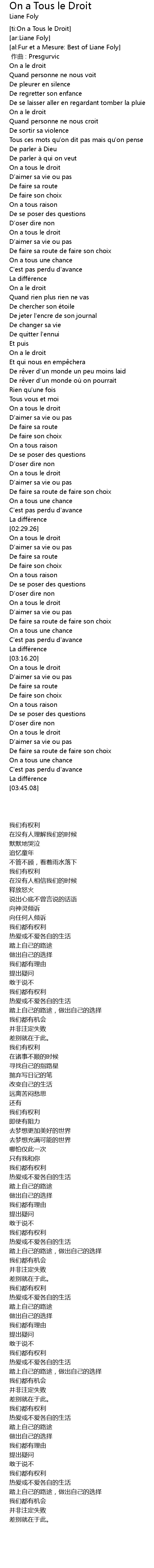 | [00:44.60] | Tous ces mots qu' on dit pas mais qu' on pense |