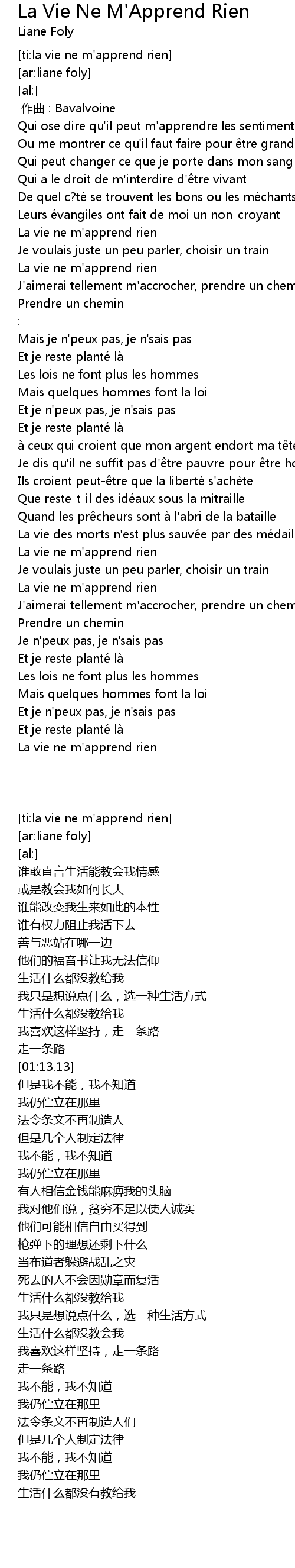 | [00:44.40] | La vie ne m' apprend rien |