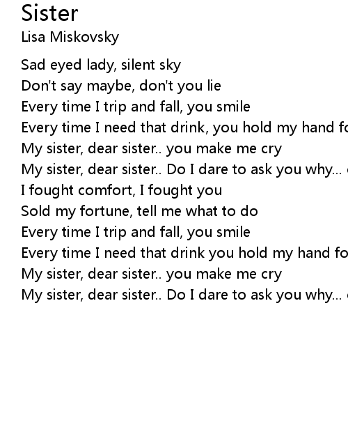 My sister, dear sister.. Do I dare to ask you why... oh, why? |