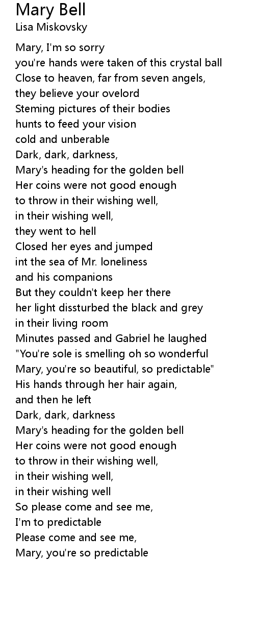 Mary, you're so beautiful, so predictable" |