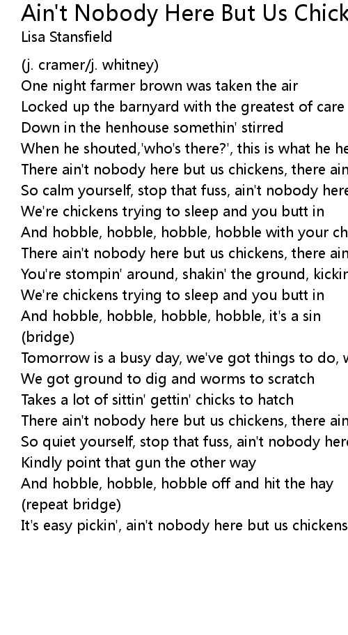 There ain't nobody here but us chickens, there ain't nobody here at all |