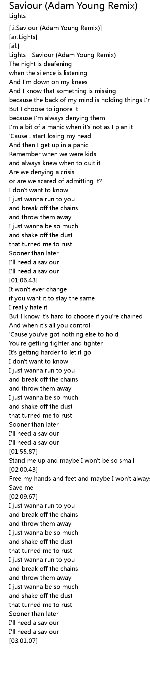 [ti:Saviour (Adam Young Remix)] |