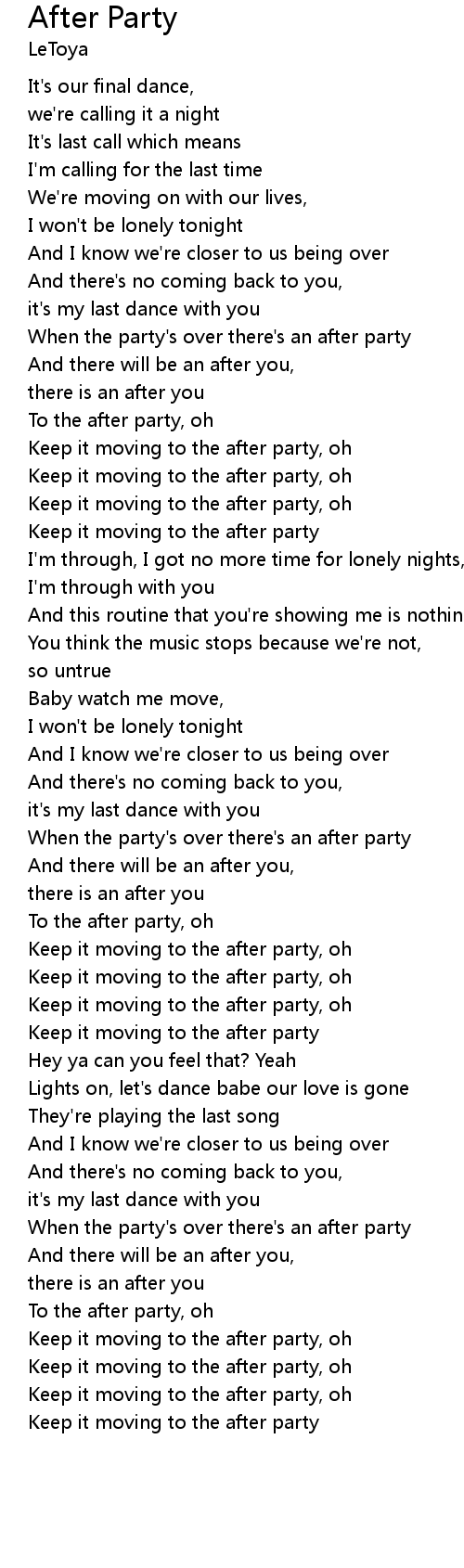 Keep it moving to the after party, oh |