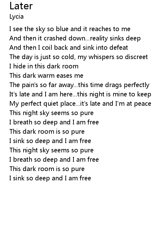 | [04:11.34] | My perfect quiet place...it's late and I'm at peace |