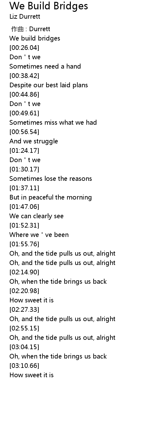 | [02:06.96] | Oh, and the tide pulls us out, alright |