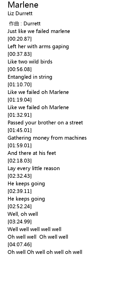 | [01:22.54] | Like we failed oh Marlene |