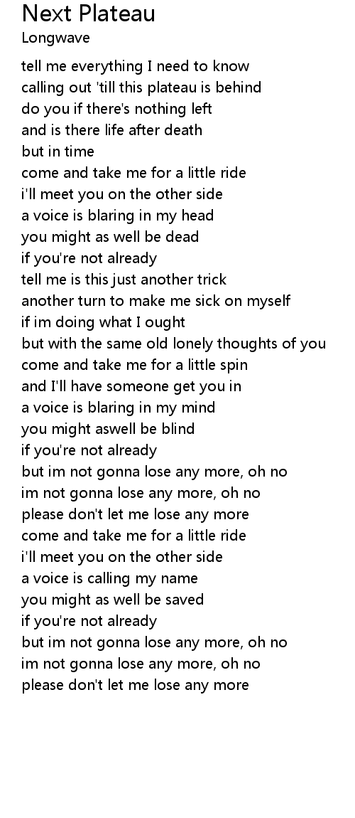 Next Plateau Lyrics