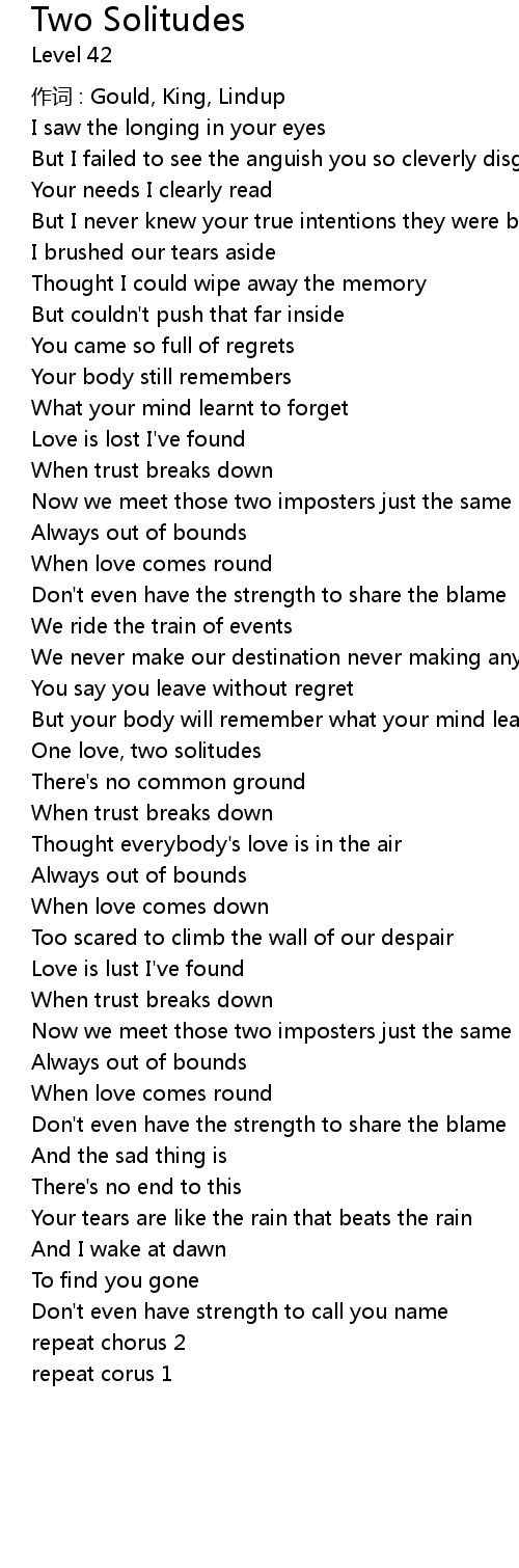| Song | Two Solitudes |