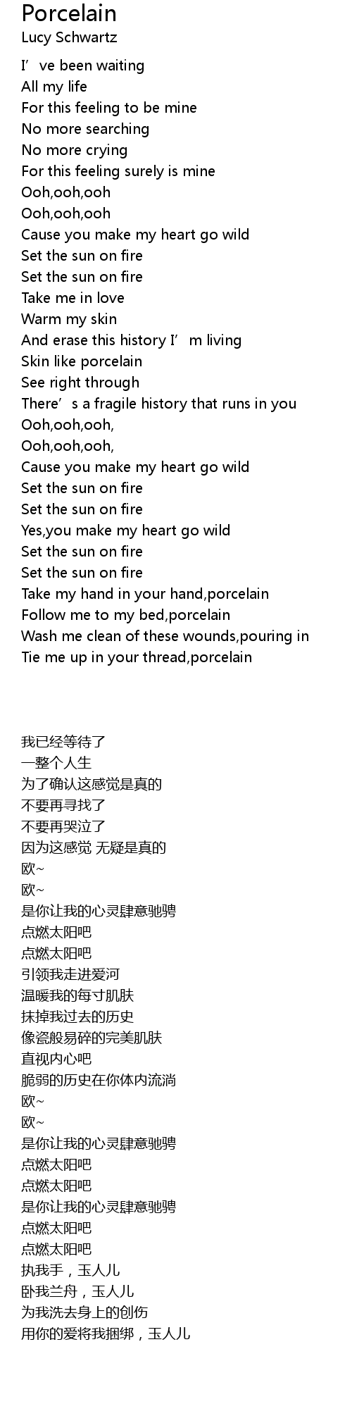 | [03:05.000] | Take my hand in your hand,porcelain |