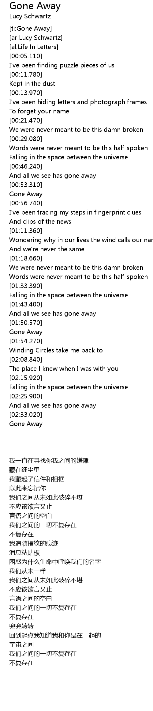 [ti:Gone Away] |