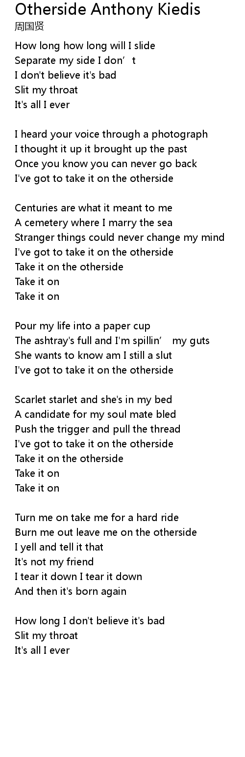 | Song | Otherside Anthony Kiedis |
