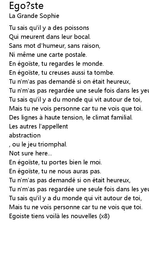 | Mais tu ne vois personne car tu ne vois que toi. | |