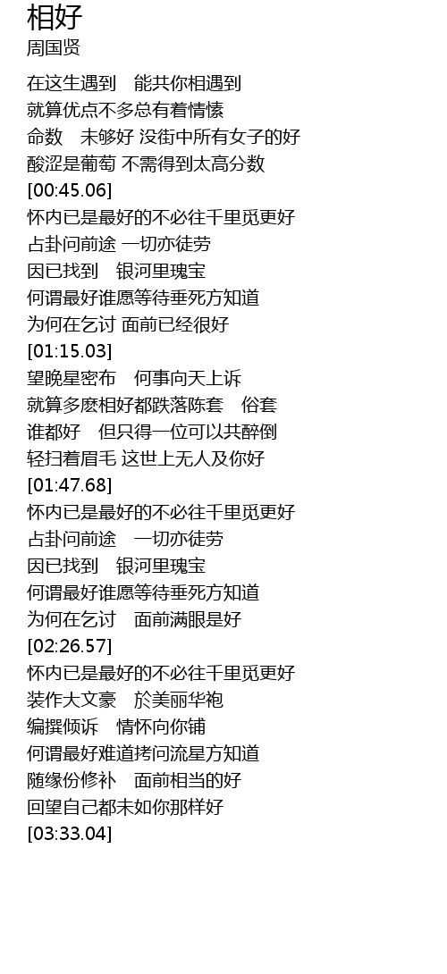 | [01:59.99] | 怀内已是最好的不必往千里觅更好 |