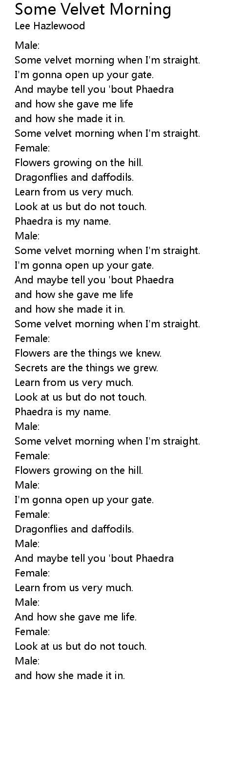 Some Velvet Morning Lyrics