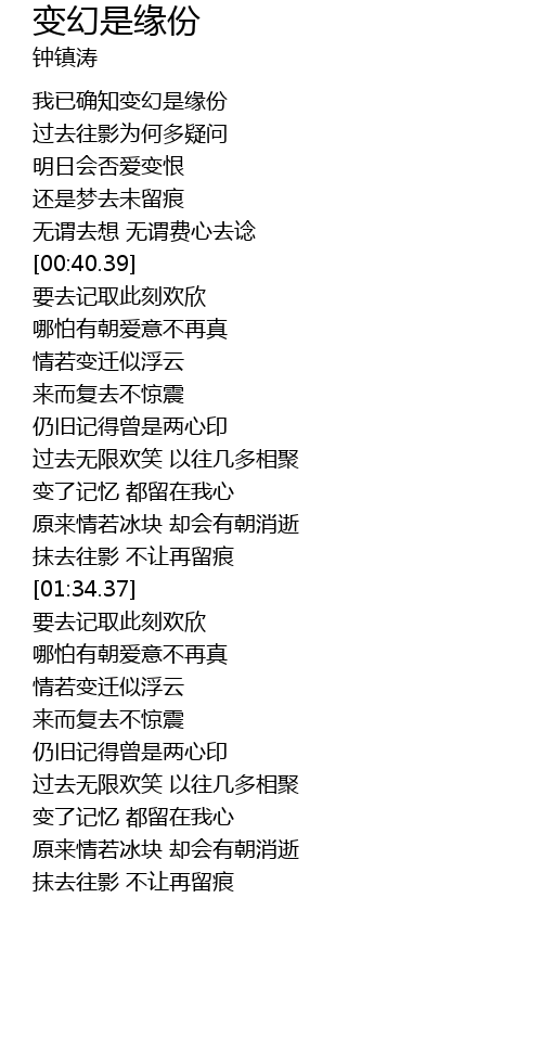 | [00:14.56] | 我已确知变幻是缘份 |