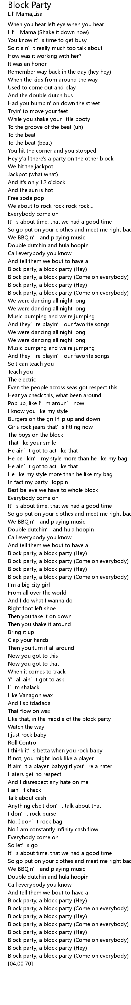 | [03:56.37] | Block party, a block party (Come on everybody) |