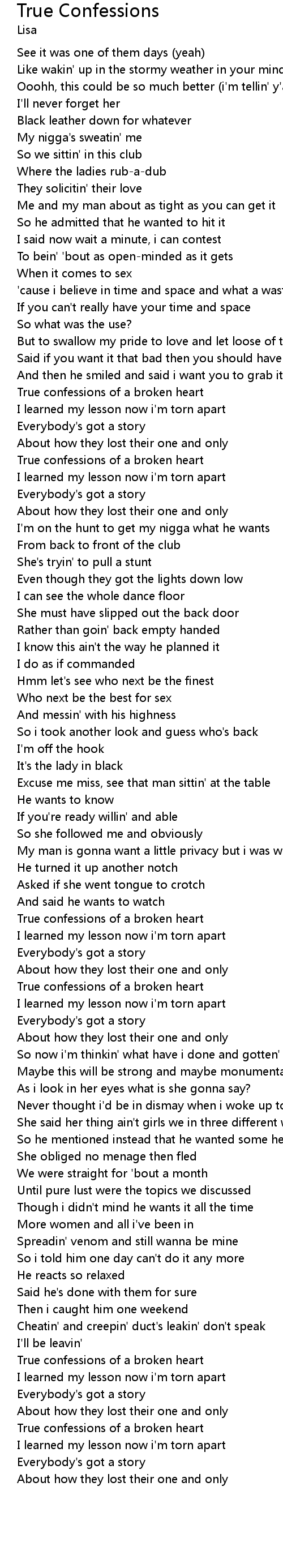 | True confessions of a broken heart | |