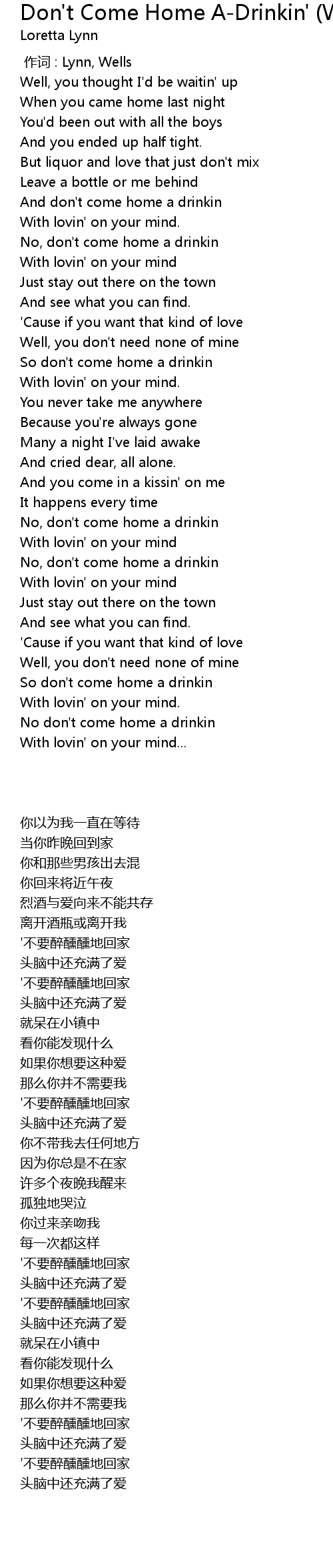 | Song | Don't Come Home A-Drinkin' (With Lovin' On Your Mind) |