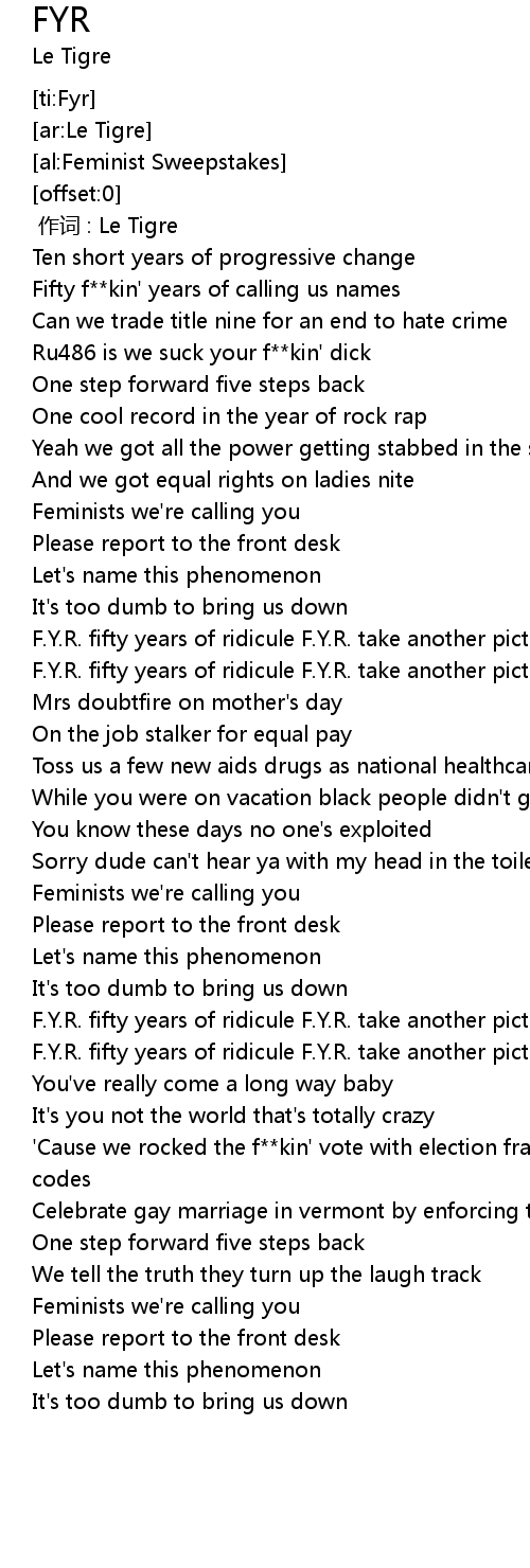 | [00:46.56] | F.Y.R. fifty years of ridicule F.Y.R. take another picture |