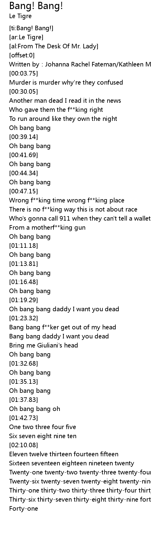 | [01:23.88] | Bang bang f**ker get out of my head |
