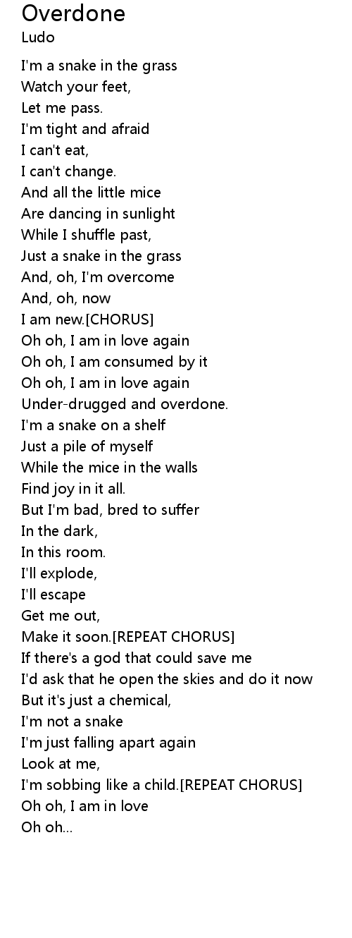 I'm sobbing like a child.[REPEAT CHORUS] |