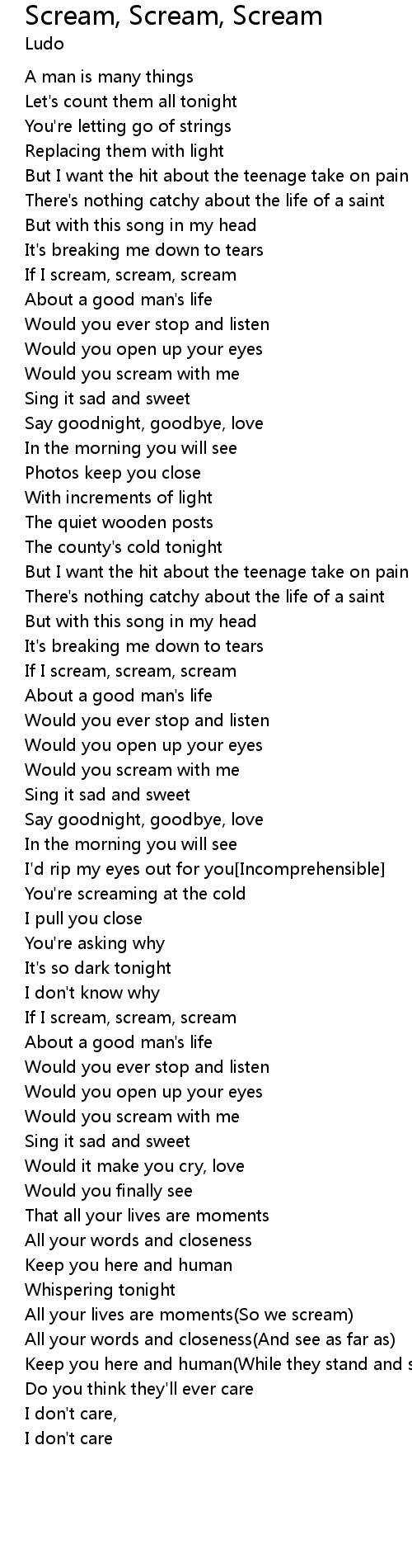If I scream, scream, scream |
