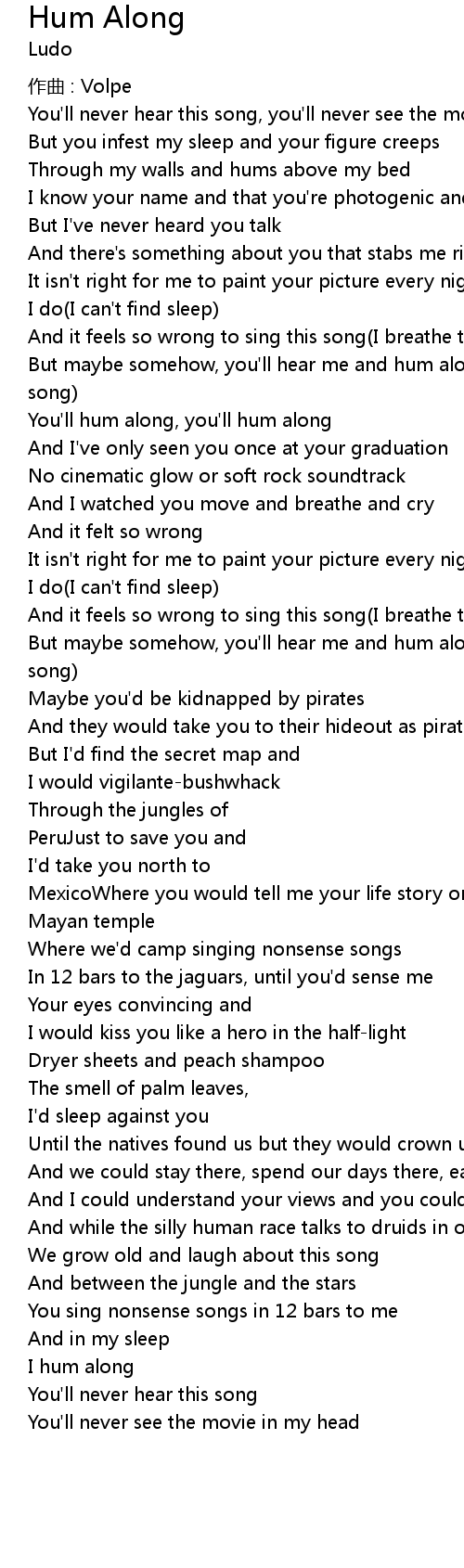 | But maybe somehow, you' ll hear me and hum along As I walk and sing you' ll hear a song | |