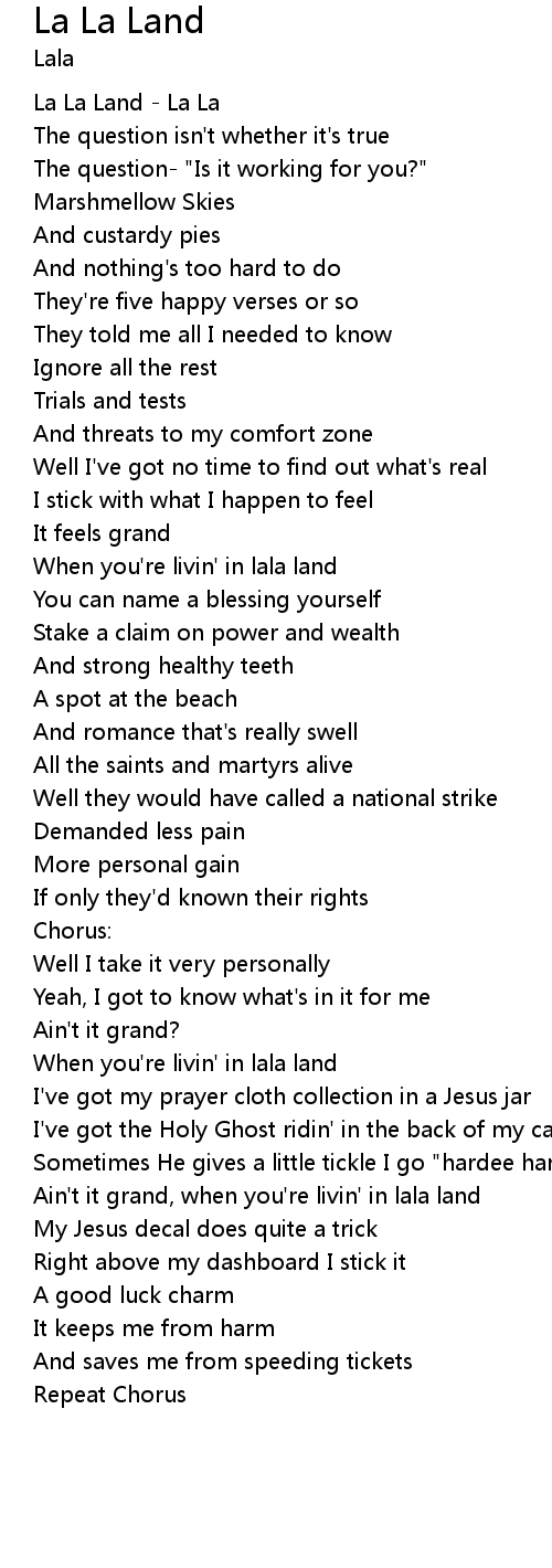 When you're livin' in lala land |