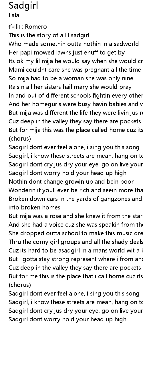| Sadgirl dont ever feel alone, i sing you this song | |