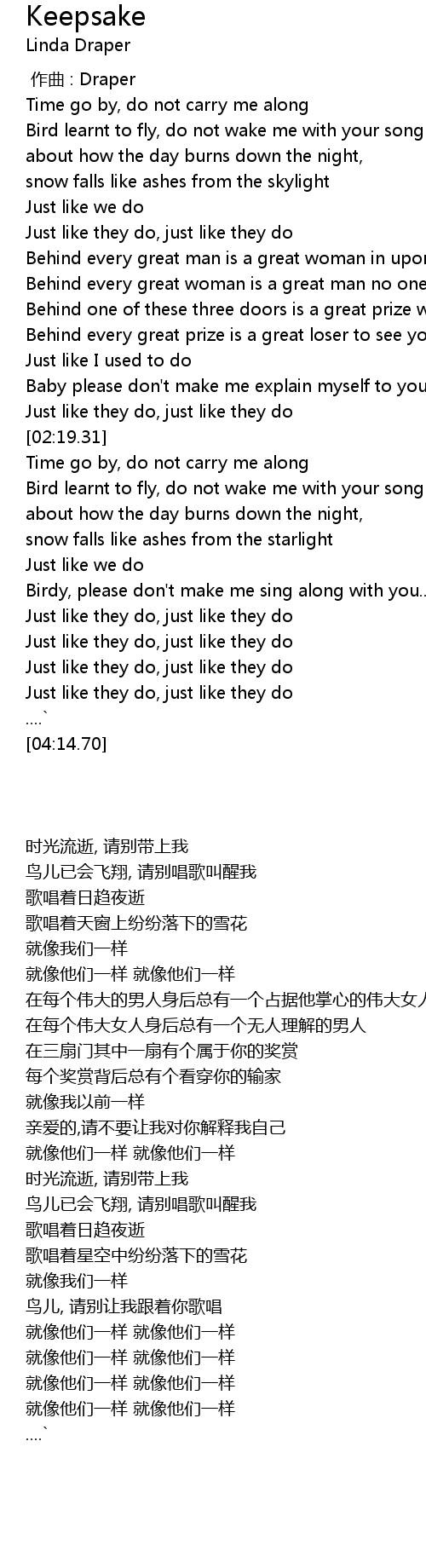 | [02:59.31] | Bird learnt to fly, do not wake me with your song |