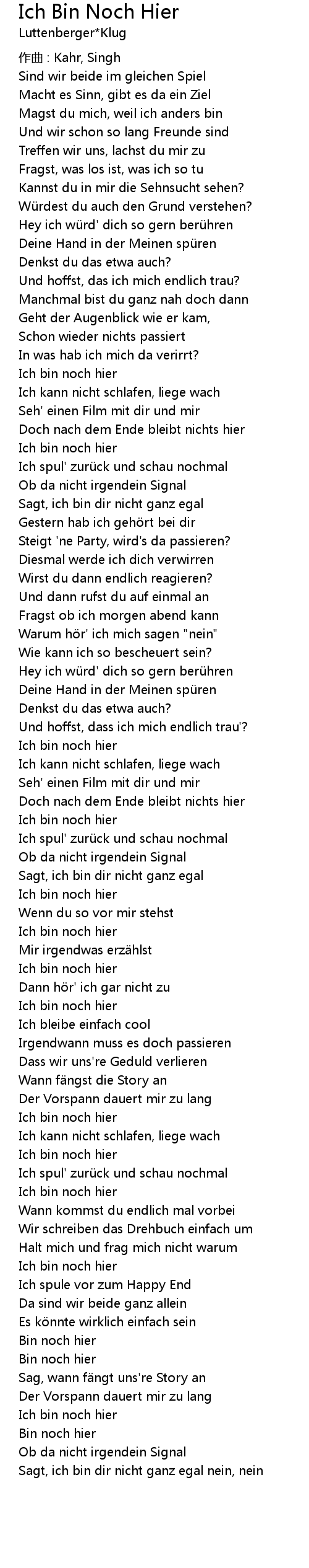 | Song | Ich Bin Noch Hier |